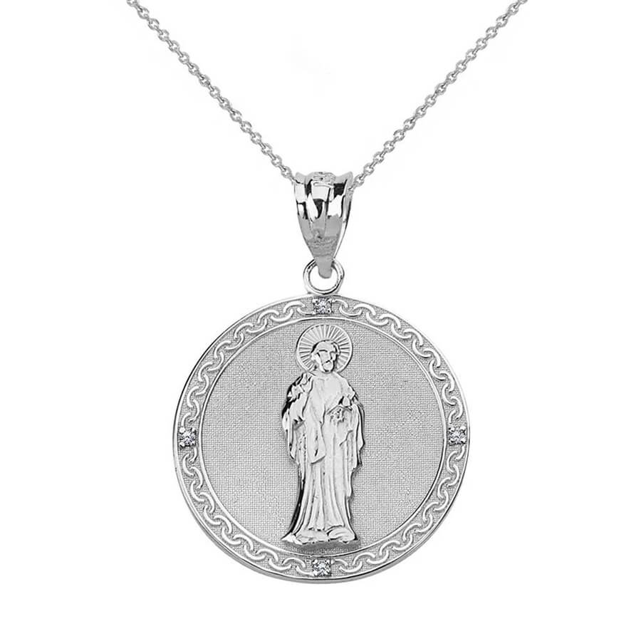 Handcrafted in 925 sterling silver. – Accommodates chains up to 3.5mm, a very versatile size that can fit most of your chains. – High polish finish for a mirror-like shine. Stone Type: Lab Created Stone Count: 4Stone Shape: Round Stone Size: 2.1 mm – Rhodium plated for extra durability and shine. – Allergy-free – Our silver doesn’t contain nickel. – Tarnish-free when taken care of properly. – Height (includes the bail): 1.01″ Width: 0.72″Stamped for authenticity (925 Stamp for 925 Sterling Silver). Make it a necklace by adding a matching silver 0.5mm rolo chain. | Men’s Collection , Men’s Pendants/Necklaces , Religious Collection , Christianity , Saints Collection , Saint Peter